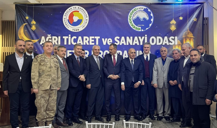 Ağrı Ticaret ve Sanayi Odası (ATSO) tarafından düzenlenen geniş katılımlı iftar programı, iş dünyası, kamu yöneticileri ve sivil toplum temsilcilerini aynı sofrada buluşturdu. Yaklaşık 1500 iş insanının katıldığı iftar programında, birlik ve beraberlik mesajlarının verildiği önemli bir buluşma gerçekleşti.