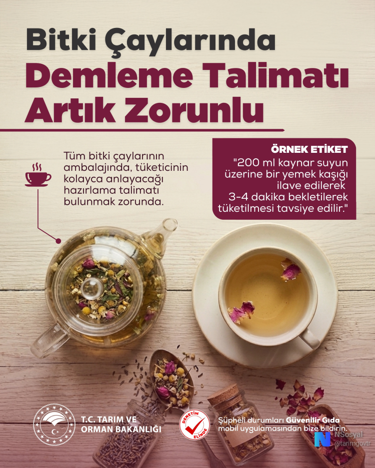 Yeni dönemde her bitki çayı ambalajında; suyun sıcaklığından demleme süresine kadar en sağlıklı tüketim yöntemini içeren net talimatlar yer alacak. Böylece vatandaşlar, aldıkları ürünün şifasından maksimum düzeyde faydalanabilecek.