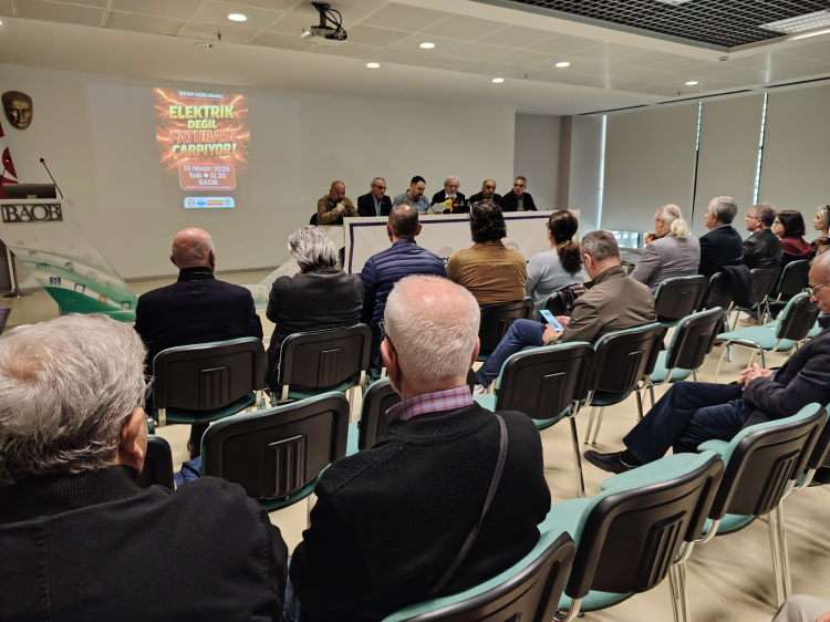 “Elektrik değil, faturası çarpıyor” başlığıyla gerçekleştirilen açıklama, BAOB Ortak Salonu’nda yapıldı. Metni, TMMOB Elektrik Mühendisleri Odası Bursa Şube Başkanı Burak Özgen okudu.