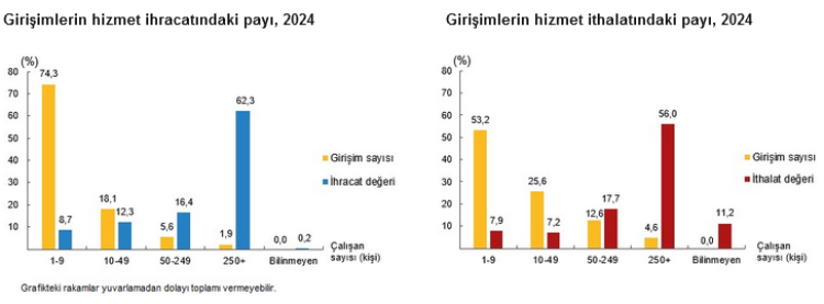 TÜİK verilerine göre, 2024 yılında hizmet ihracatı ve ithalatında en büyük payı büyük ölçekli girişimler aldı.