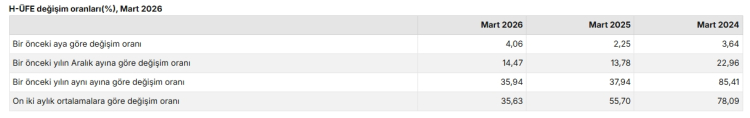 ANKARA (İGFA) – TÜİK, 2026 yılı Mart ayına ilişkin Hizmet Üretici Fiyat Endeksi (H-ÜFE) verilerini açıkladı. Buna göre endeks, Mart’ta bir önceki aya göre yüzde 4,06, yılın başına göre yüzde 14,47, geçen yılın aynı ayına göre ise yüzde 35,94 artış gösterdi. On iki aylık ortalamalara göre artış oranı yüzde 35,63 olarak kaydedildi.