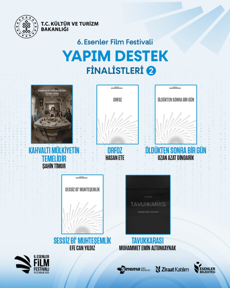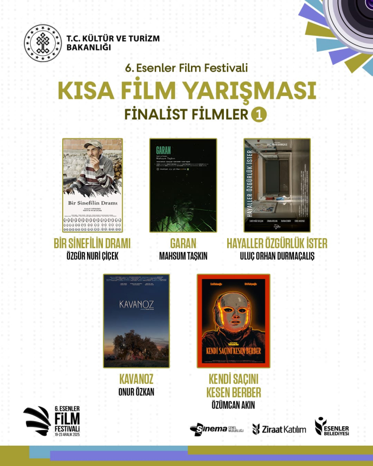İstanbul’da Esenler Belediyesi’nin mesken sahipliğinde 19-23 Aralık tarihleri ortasında düzenlenecek 6. Esenler Sinema Festivali’nin müsabaka ve üretim takviye kısmı finalistleri muhakkak oldu. Mükafatlar 23 Aralık’ta sahiplerini bulacak.