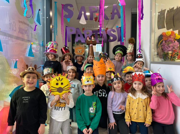 Renkli kartonlardan, tüllerden, düğmelerden ve geri dönüşüm malzemelerinden hazırlanan şapkalar adeta görsel bir şölene dönüştü. Kimi çiçek bahçesini başına taşıdı, kimi de masal kahramanına dönüştü. Şarkılar eşliğinde sınıflarda neşeli anlar yaşanırken, çocuklar arkadaşlarıyla birlikte oyunlar oynayıp doyasıya eğlendi. Gün boyunca kahkahalar koridorlardan taşarken çocuklar üretmenin, paylaşmanın ve birlikte başarmanın mutluluğunu da deneyimledi.