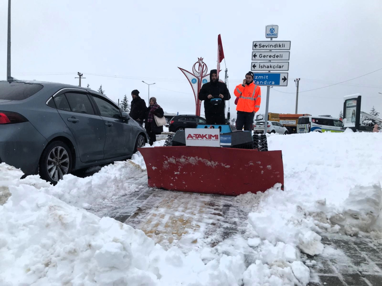 Bu kapsamda Büyükşehir Belediyesi A Takımı ve Yol Bakım Timi ekipleri, Kocaeli Üniversitesi Umuttepe Yerleşkesinde kar küreme robotlarıyla yaya kaldırımlarında temizlik çalışması gerçekleştirdi.