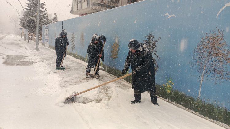 Kar yağışının devam etmesinden dolayı ekipler açılan yolların tekrar kapanmaması için çalışmalarına aralıksız bir şekilde devam ediyor.