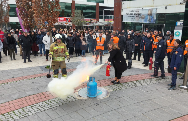 Yangın esnasında yaralanan personele ise iş yeri hekimi tarafından müdahale edilerek sağlık ekiplerine teslim edildi. Öte yandan uygulama için hizmet binası önünde belirlenen alanda personele yangın söndürme tüpü ile uygulamalı olarak yangına müdahale konusunda bilgilendirme yapıldı.