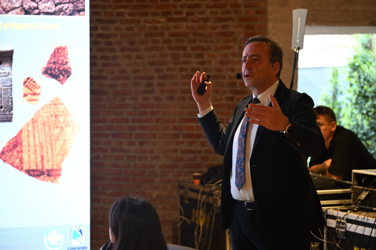 Manisa topraklarının arkeolojik açıdan paha biçilemez olduğunu vurgulayan Prof. Dr. Yusuf Sezgin, söyleşide yaptığı konuşmada coğrafyanın tarihsel gücüne dikkat çekti. Sezgin, “Erken dönemlerden itibaren özel bir coğrafyadayız. Sardes gibi bir dünya mirasının bu topraklarda olması bizler için büyük bir şans. Biz aslında devasa bir açık hava müzesinin, büyük bir zenginliğin içinde yaşıyoruz” dedi.