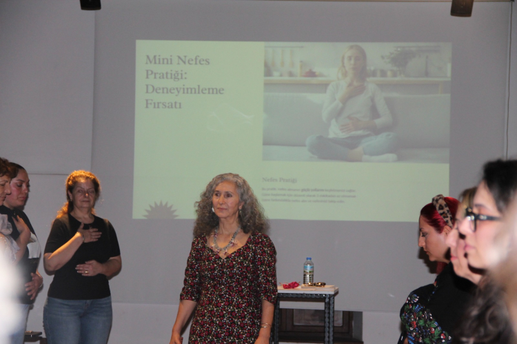 Etkinliğin uygulamalı bölümünde katılımcılar, nefes farkındalığını artırmaya yönelik pratikler yaparak kendi bedenlerini ve nefes ritimlerini gözlemleme fırsatı buldu. Bu çalışmalar sayesinde katılımcılar, günlük yaşamda karşılaşılan stresli durumlarla daha sağlıklı baş etme yolları üzerine farkındalık kazandı.