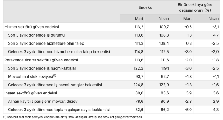 Nisan’ın güven tablosu netleşti… Hizmet ve perakende geriledi, inşaat yükseldi