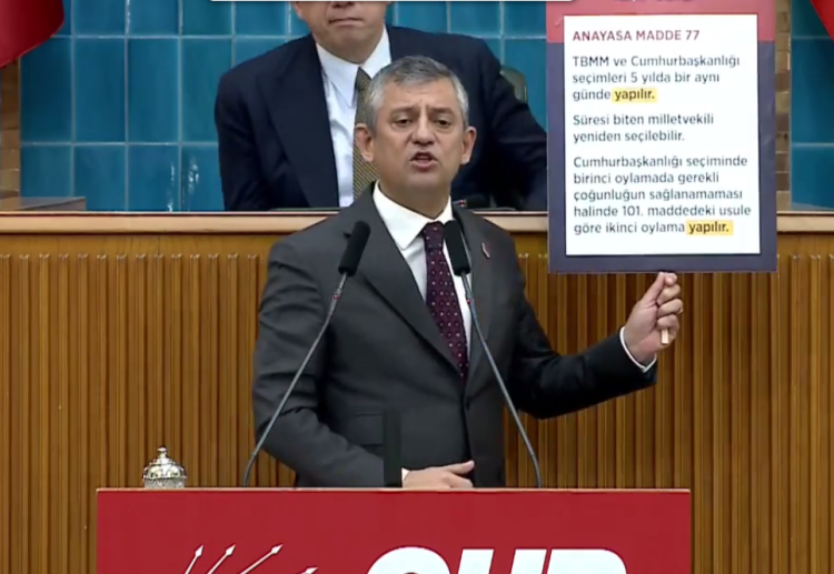 CHP Genel Başkanı Özgür Özel, partisinin TBMM’deki grup toplantısında iktidara sert eleştiriler yöneltti. Bursa’daki tutuklamaları ‘haysiyet suikastı’ olarak nitelendiren Özel, İzmir Meslek Fabrikası’na yapılan operasyonu ise ‘harami zihniyet’ olarak değerlendirdi. Siyasi Etik Yasası’na da değinen Özel, ara seçim istemiyle ilgili taleplerini de yeniden gündeme getirdi. Özel, ara seçimlerin ya yapılacağını ya da korkakların tarihe yazılacağını belirtti.