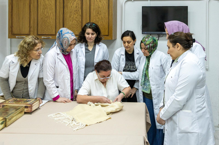 Atölye süresince katılımcılar, bu özgün işlemelerin teknik yapısını keşfederken; desen çözümleme, motif okuma ve yeniden desen oluşturma süreçlerine aktif olarak dahil oldular. Gelenekselin izinden ilerleyen bu uygulamalı çalışmalar, geçmişin estetik kodlarını günümüz tasarım diliyle buluşturma imkânı sundu.
