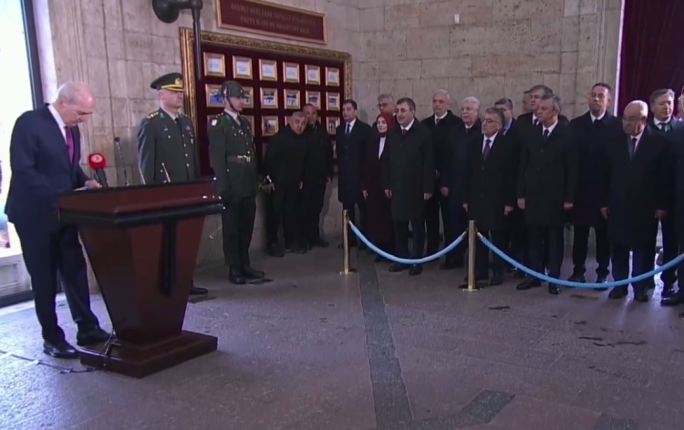 TBMM Başkanı Numan Kurtulmuş’un, Atatürk Anıtı’na kırmızı ve beyaz karanfillerden oluşan çelenk bırakmasının ardından saygı duruşunda bulunuldu, İstiklal Marşı okundu.