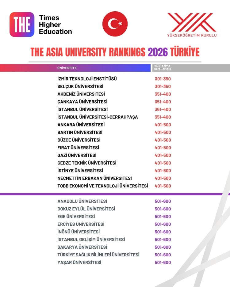 THE 2026 Asya sıralaması belli oldu… Türkiye ilk 3’te yer aldı