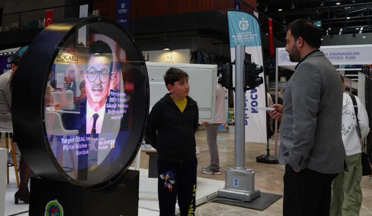 Kocaeli Büyükşehir Belediyesi’nin konut sahipliğinde gerçekleşen ve büyük ilgi gören Kocaeli Bilişim Fuarı, iştirakçileri yapay zekâ ile tarihi seyahate çıkardı. 8. Cumhurbaşkanı Turgut Özal’ın yapay zekâ ile hazırlanan hologramı iştirakçilere farklı bir teknoloji tecrübe fırsatı sundu.